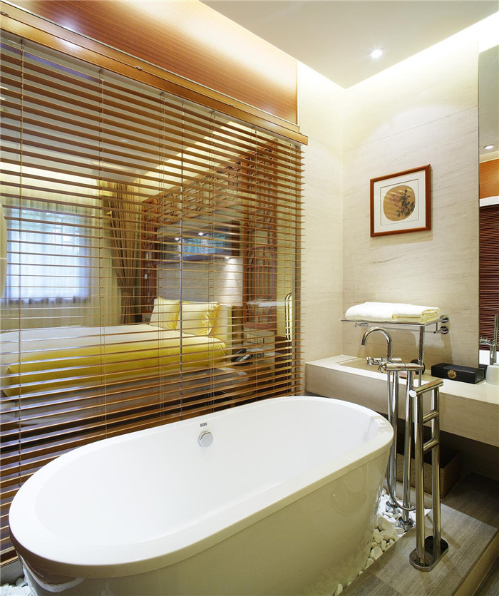 這家精品酒店的大堂設計也融入了佛元素。一入大堂,滿眼袈裟黃,明朗鋪墊“大乘佛教”的基調(diào)。酒店有22間禪意客房,房間燈光設計柔和,讓修行之旅靜謐無憂。豪華套房面積達110平米,設計別有天地。