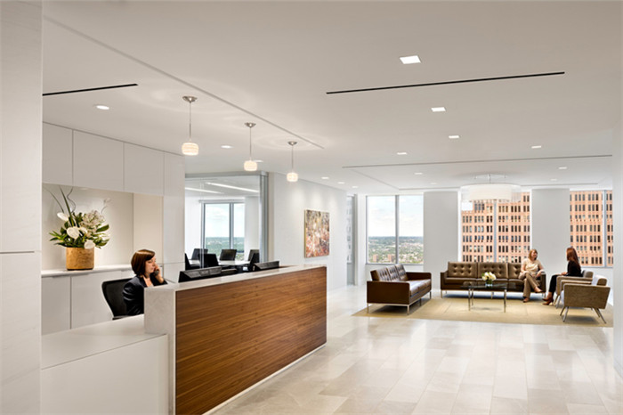 新的辦公空間最多可容納250位律師和全公司的支持人員。這個辦公室需要邏輯布局的開發(fā),有更具合作特點的空間,充當公司前門的新會議中心。辦公室室內(nèi)空間設計很是精致,極具現(xiàn)代精品的味道。