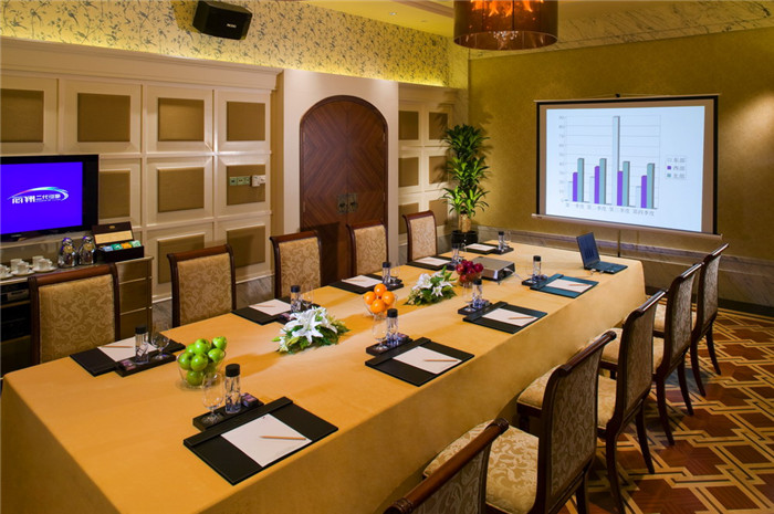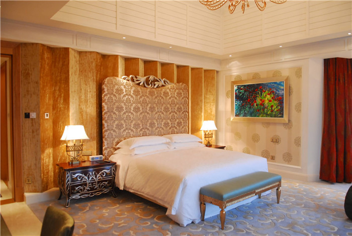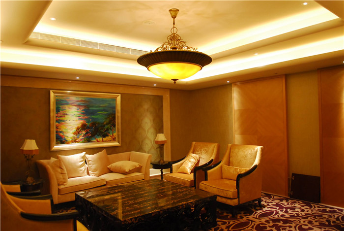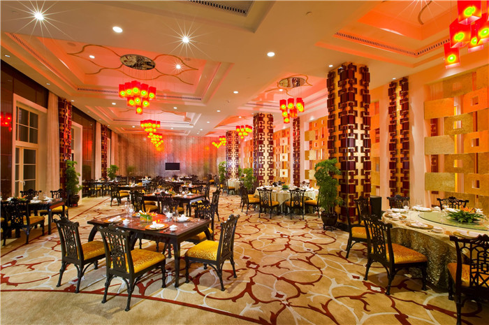 酒店設(shè)有豪華客房312間,其中包括2了套套房,面積從45平米至250平米不等。這家五星級酒店客房設(shè)計獨具魅力。房內(nèi)或如明眸皓齒的少女,鮮妍娉婷。鵝黃、中國紅等色調(diào)在室內(nèi)交疊,靈動跳躍,以大地色、深棕色等稍事雕琢。菱格圖案地毯疏朗立體,與床頭板的正方形肌理你呼我應(yīng),隱射幾何玄機。窗外,青山含黛,碧水悠悠。真是一扇窗,兩世界。