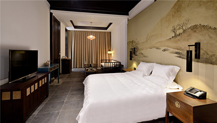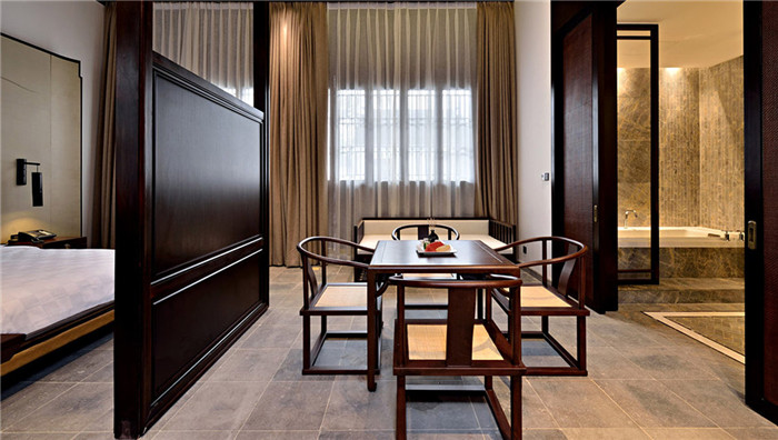 酒店空間設(shè)計以園林文化結(jié)合現(xiàn)代美學(xué),將人文情懷融入酒店設(shè)計和服務(wù),可以說是人間天堂。酒店占地3150平方米,門廳、茶廳、正廳、內(nèi)廳、走馬樓五進組成,五進皆為樓屋,四座四合院由五進樓廳圍合而成。窗戶敞亮典雅、磚雕精美可觀、木刻雋秀細(xì)膩。