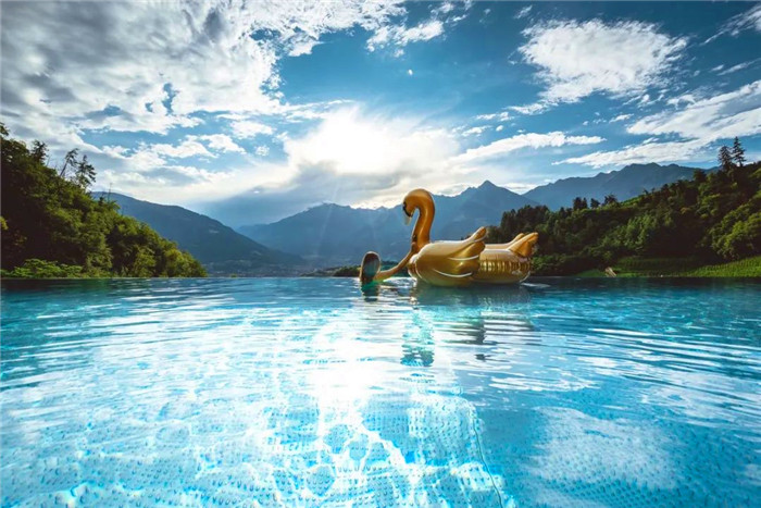 趴在泳池邊眺望遠處的山林,是最放松的。