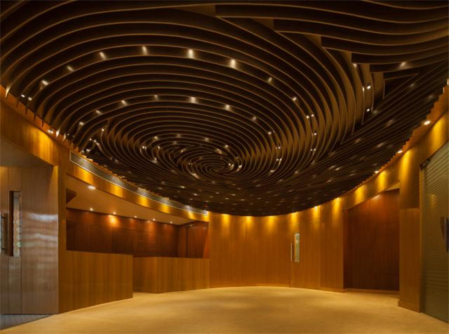辦公樓室內(nèi)空間設(shè)計(jì)大膽使用建筑體量和植入城市來提高自身知名度或訊息。為彰顯企業(yè)的地位,使用了指紋這一彰顯身份的元素。穿孔的漂浮的紅色幕墻上標(biāo)有公司的品牌標(biāo)識,辦公樓具有極強(qiáng)的視覺感。