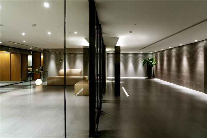 由黑色落地窗框銜接梯廳與大廳空間的格局關系,設計師透過矩陣式排列的天花板燈具,循序鋪陳安定和諧的情境內(nèi)涵,以灰色大理石為基底的迎賓柜臺,藉由水平光帶的疊合拼接,演繹出層次豐富的混搭工藝。順應圓弧墻面營造出的情境轉(zhuǎn)折,區(qū)隔出各自獨立的機能段落。彷彿原野當中的綻放花朵,不論在工作桌面或者是屏風、桌腳,處處可見活潑生動的視覺韻律。
