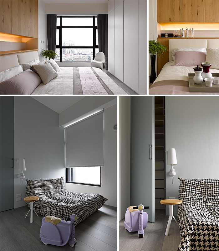 書房與小孩的游戲間,親切體現(xiàn)小世界的知足美,利用木門表框世界與居家的即景,無論對內(nèi)對外,都能擁有足夠的深度體驗。